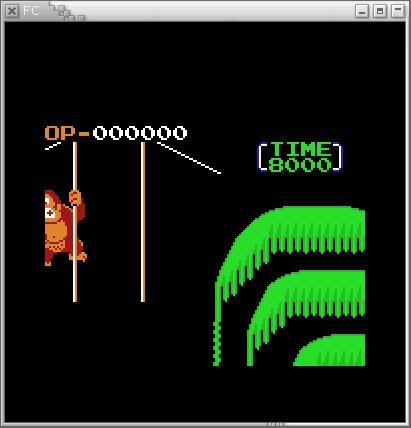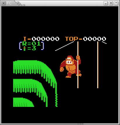 El manejo del emulador es bastante simple, y las teclas se corresponden una a una con las de la GB. Lo único a tener en cuenta es que, como la pantalla de la NES es más grande que la de la GB, esta no cabe completamente. Para poder ver otras partes de la pantalla de la NES, es necesario hacer un scroll pulsando simultáneamente las teclas SELECT + CURSORES. Por ejemplo, en el Donkey Kong 3 podemos hacer un scroll a cualquiera de las 4 esquinas:![]() |