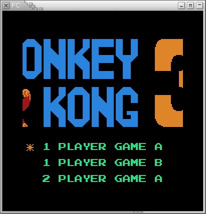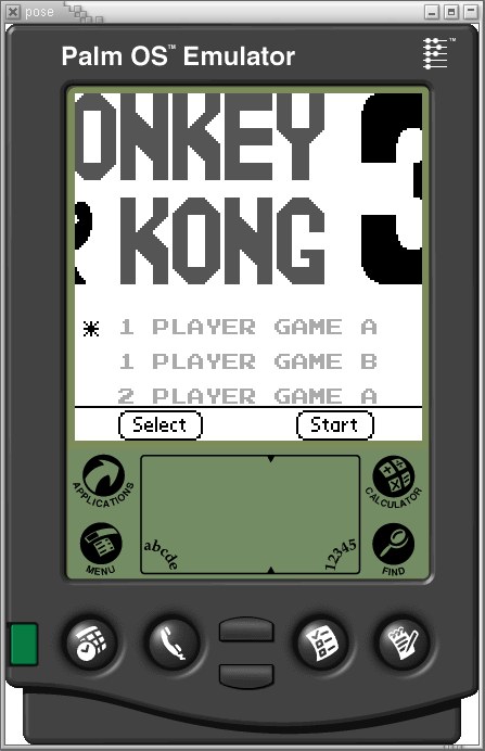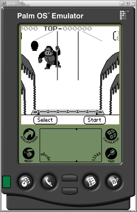 Emulador: NES4GB, ejecutándose en el PalmBoy para PalmOS, ejecutándose en el POSE para Linux. Recordar que PalmBoy es un emulador de GB, no GBC. |