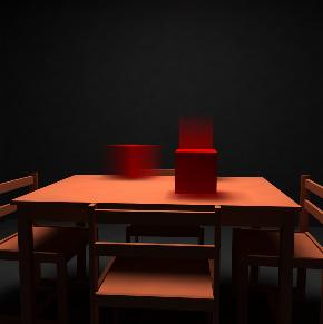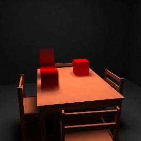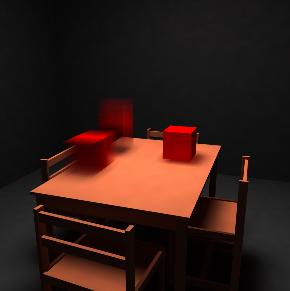 The same scene with two motion objects. Motion blur images can be obtained from different points of views.