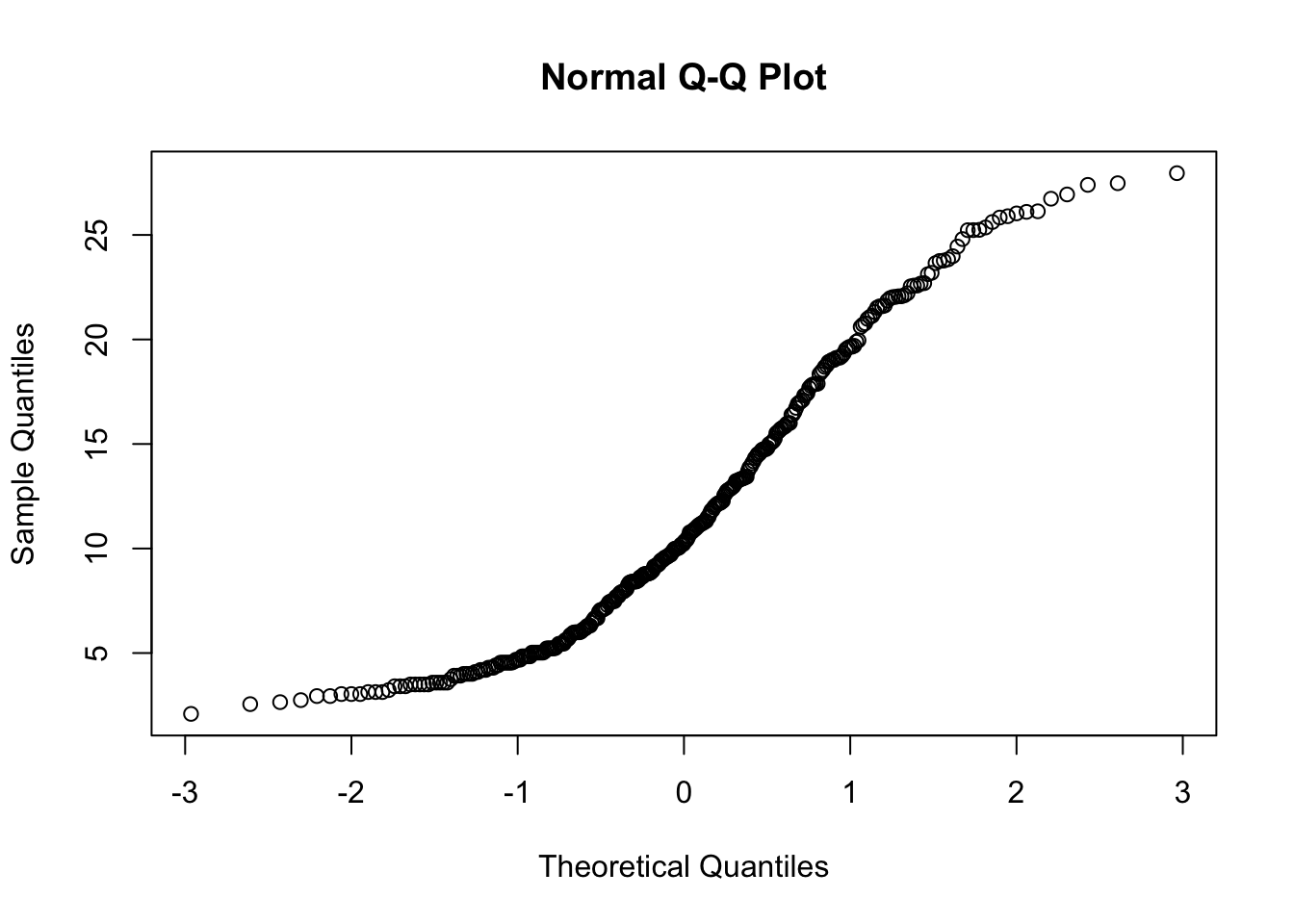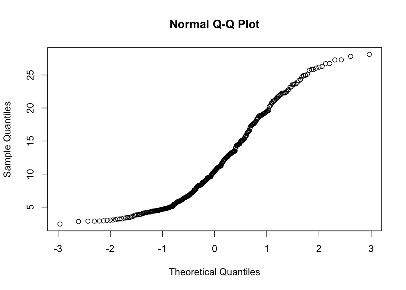 The residuals-versus-fitted plot indicates a problem of increasing variance as the mean of \(O_3\) increases and the q-q plot has a problem in its upper tail. We need to try something else.