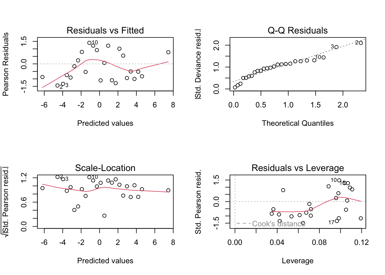 However, diagnostic plots, based on the regression residuals, are designed to highlight the specific nature of any problems with the fitted regression model. They allow us to investigate whether each of the underlying assumptions of the regression model are justified. Specifically we assess whether the residuals have a constant variance and whether they are approximately normally distributed.